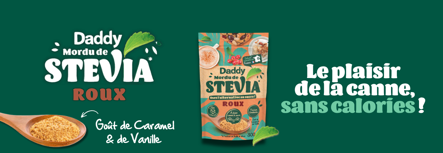 Mordu de Stevia Roux Daddy est aussi intuitif à utiliser que le sucre classique : naturel, gourmand et parfaitement adapté aux usages quotidiens de toute la famille