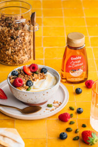 Dégustez avec du yaourt, des framboises, des fraises et des myrtilles. Nappez le tout avec un peu de sirop de canne Daddy pour encore plus de gourmandise !